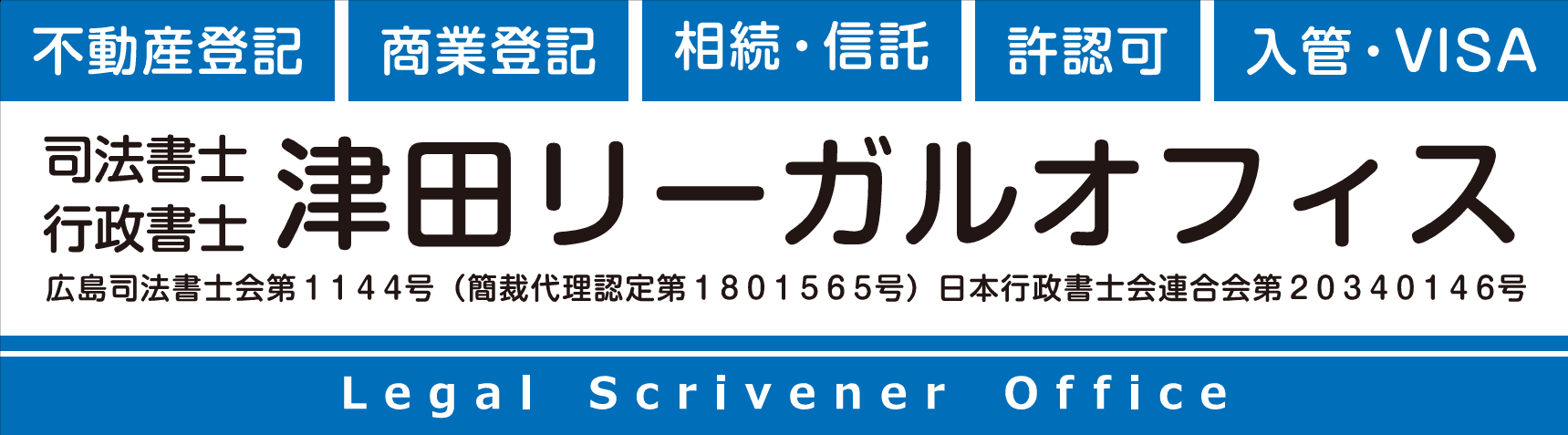 | 事務所名 | 司法書士・行政書士 津田リーガルオフィス |
